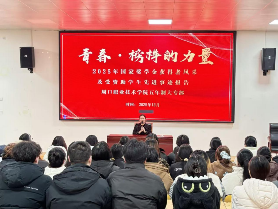 最后,学管办主任王铮对四位同学的精彩分享给予了高度评价,并向同学们系统介绍了国家相关资助政策。他鼓励大家汲取榜样力量,找准差距、奋勇争先,在砥砺前行中实现理想。本次报告会不仅展现了周职学子勤奋进取、自强不息的风采,也为广大同学提供了宝贵的成长经验,激励大家向榜样看齐、与优秀同行,以奋斗姿态谱写无愧于时代的青春华章。