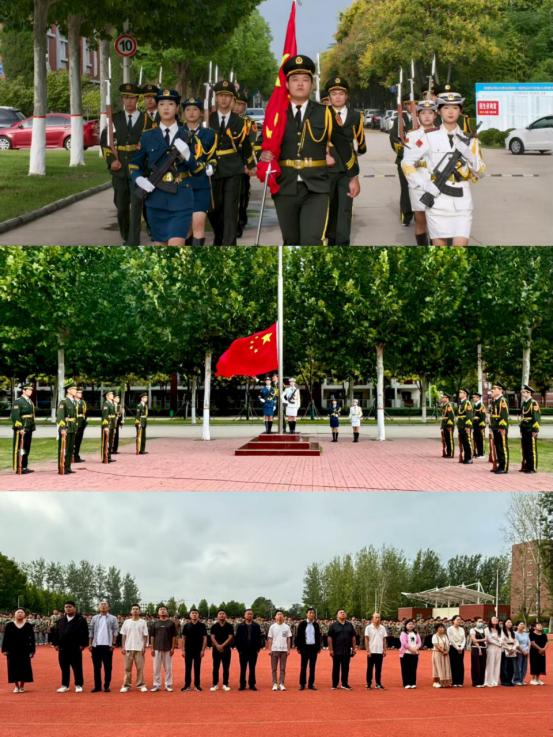 晨曦微露,国旗护卫队步伐铿锵,护送国旗入场。在激昂的《义勇军进行曲》中,鲜艳的五星红旗冉冉升起,全体师生肃立行注目礼,昂扬的爱国情怀在每个人心中激荡。